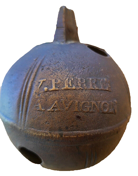 De nombreuses clochettes et sonneaux en provenance de fondeurs avignonnais circulent entre les collectionneurs. L’histoire de ces artisans est difficile à établir. L’ouvrage de Jean-Pierre Locci Fonderies & fondeurs Histoire des établissements métallurgiques en vaucluse aux XIXe et XXe siècles, fournit une bonne documentation sur les établissements Perre et Perre-Pierron. Ancien archiviste, l’auteur nous a expliqué que les petites fabriques n’ont pas laissé de documents.