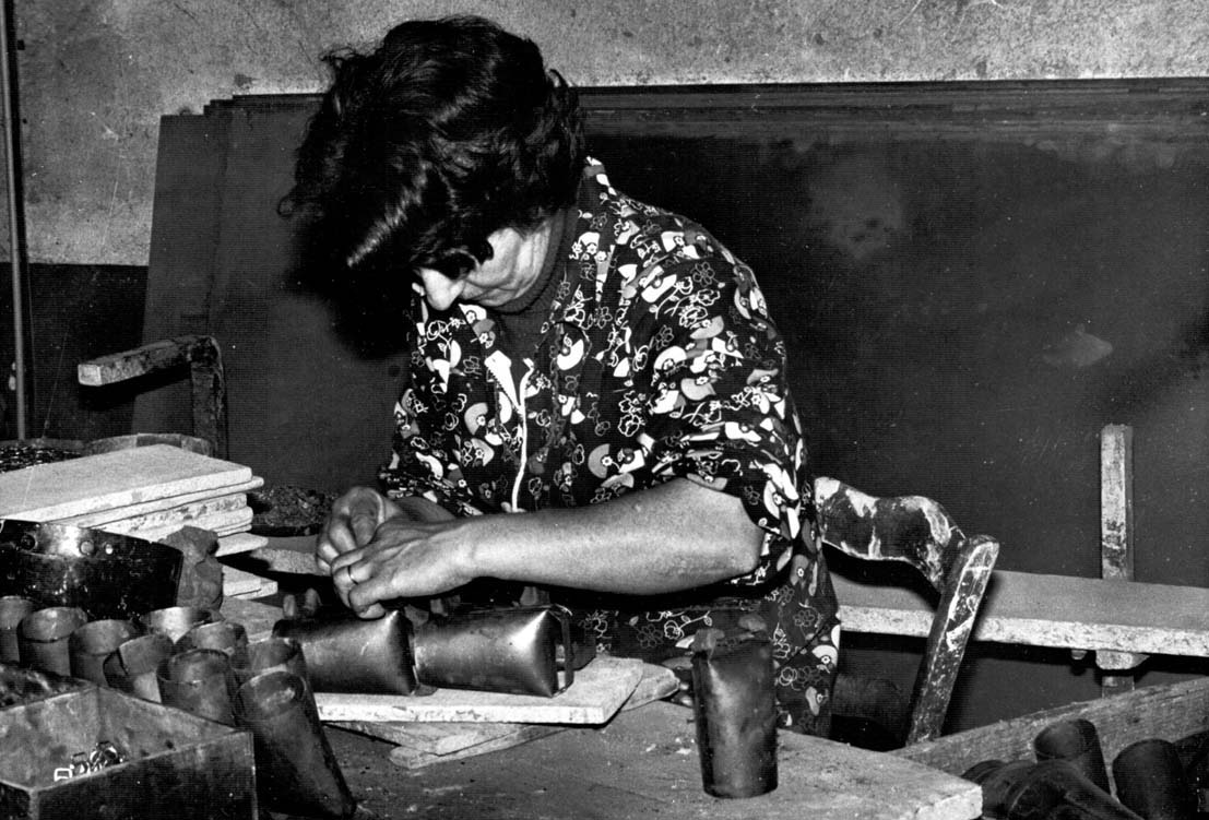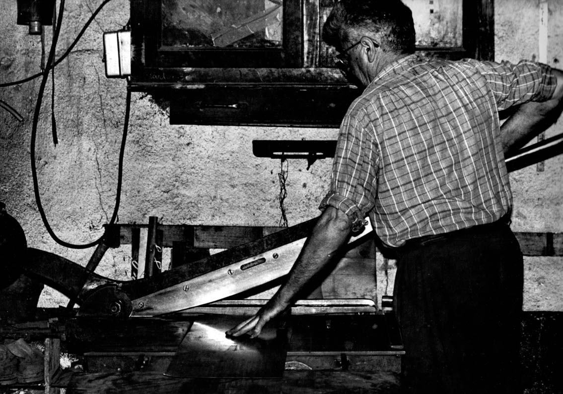 Albert AUBAGNAC, né en 1922, a appris à 17 ans le métier de fabricant de sonnailles de moutons, derrière son père, Emile Aubagnac, qui avait créé l’atelier en 1920. Emile Aubagnac est décédé en 1966 et Albert continue à fabriquer de nombreuses variétés de sonnailles qui sont expédiées dans toutes les régions pastorales de France. Il est aidé dans ce travail artisanal par sa femme, Eliette, et ses deux fils, Guy et Michel, lorsque celui-ci n’est pas à l’école.
