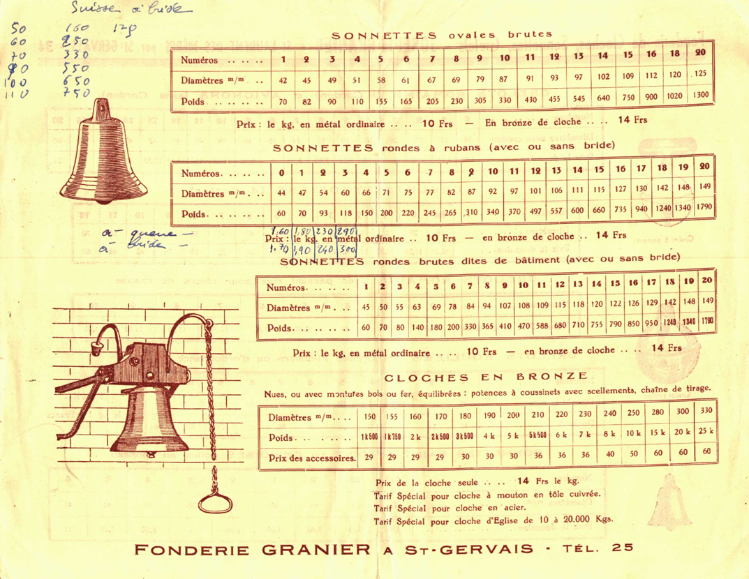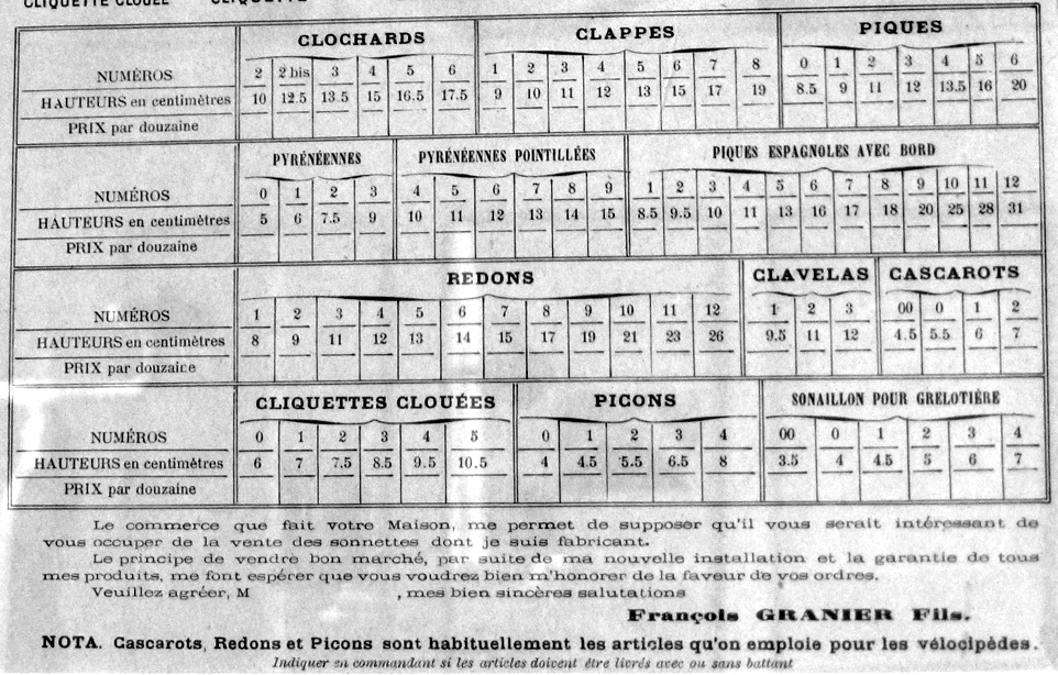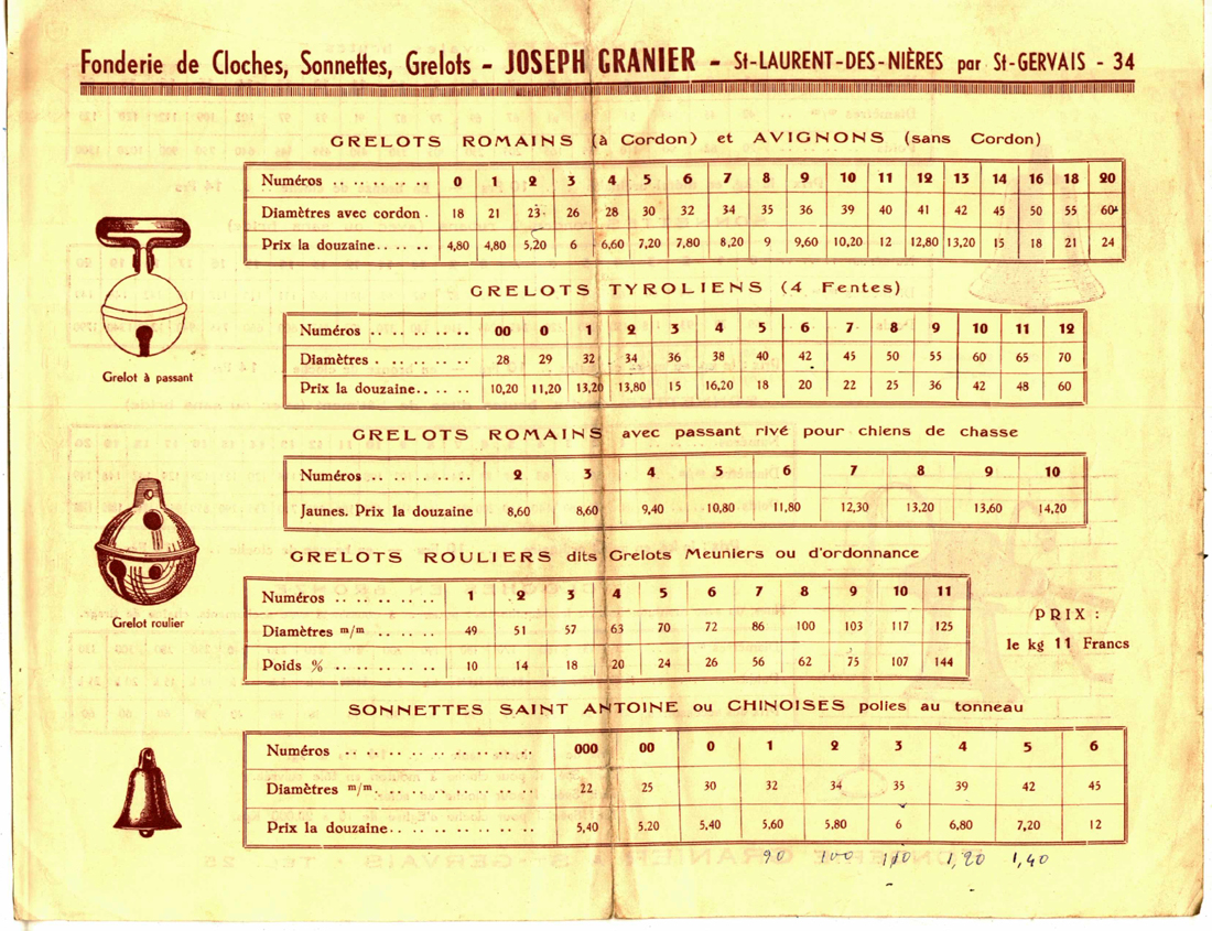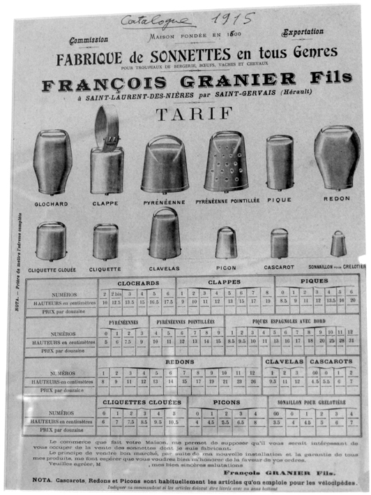 Grâce à la gentillesse de Robert Granier, conscient que sa famille s’inscrit dans l’histoire des techniques, nous pouvons reproduire les catalogues, témoins essentiels de l’histoire de la fabrication, mais aussi de la tradition, car cette dernière se construit et évolue avec le matériel disponible.