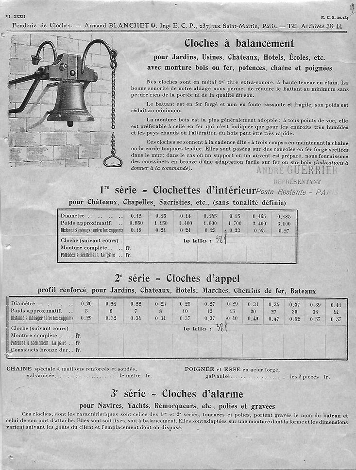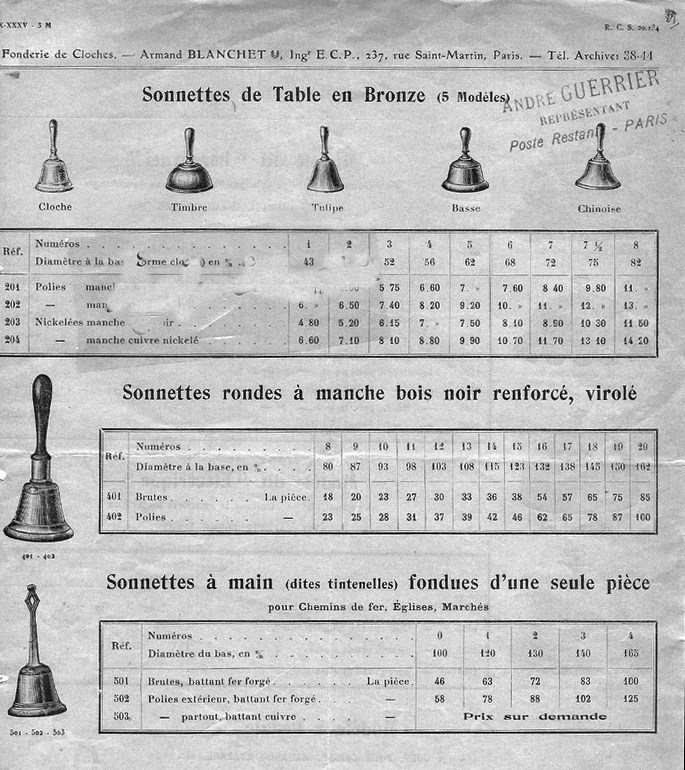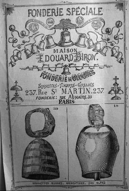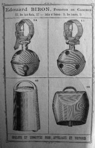 Edouard Biron signait ses sonnettes et ses timbres d’horloge « E.Biron ». La forme des sonnailles laisse supposer qu’il se servait dans l’Hérault et se contentait de revendre ces articles.