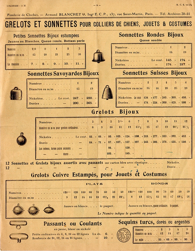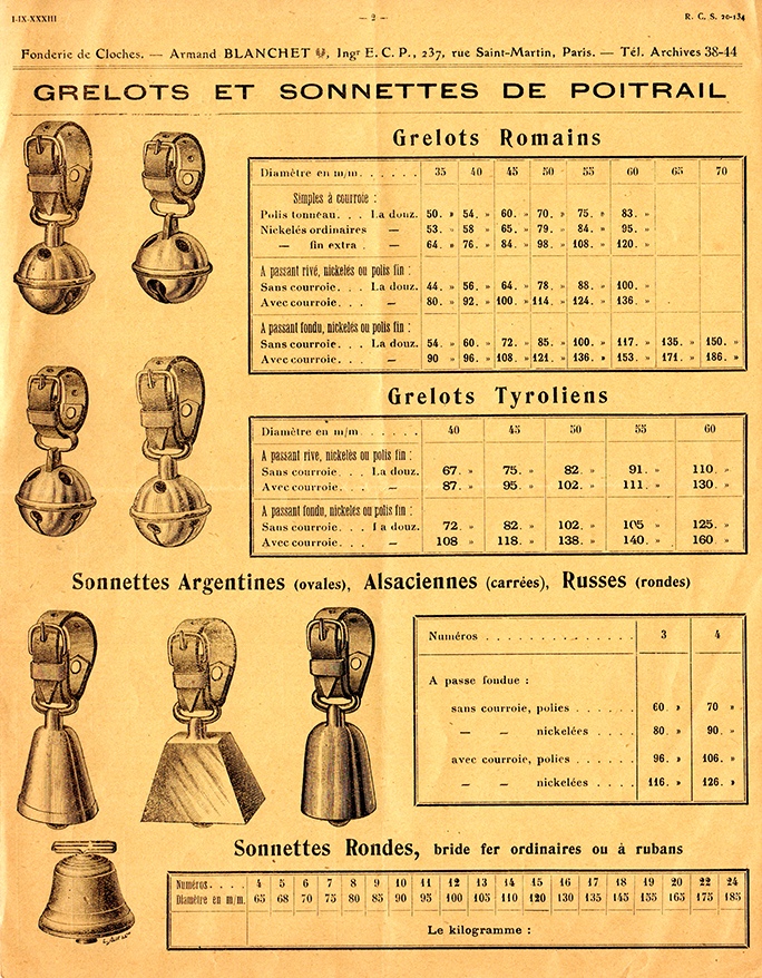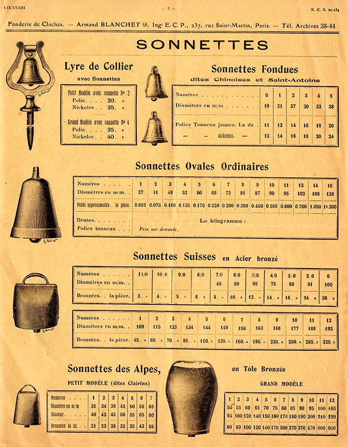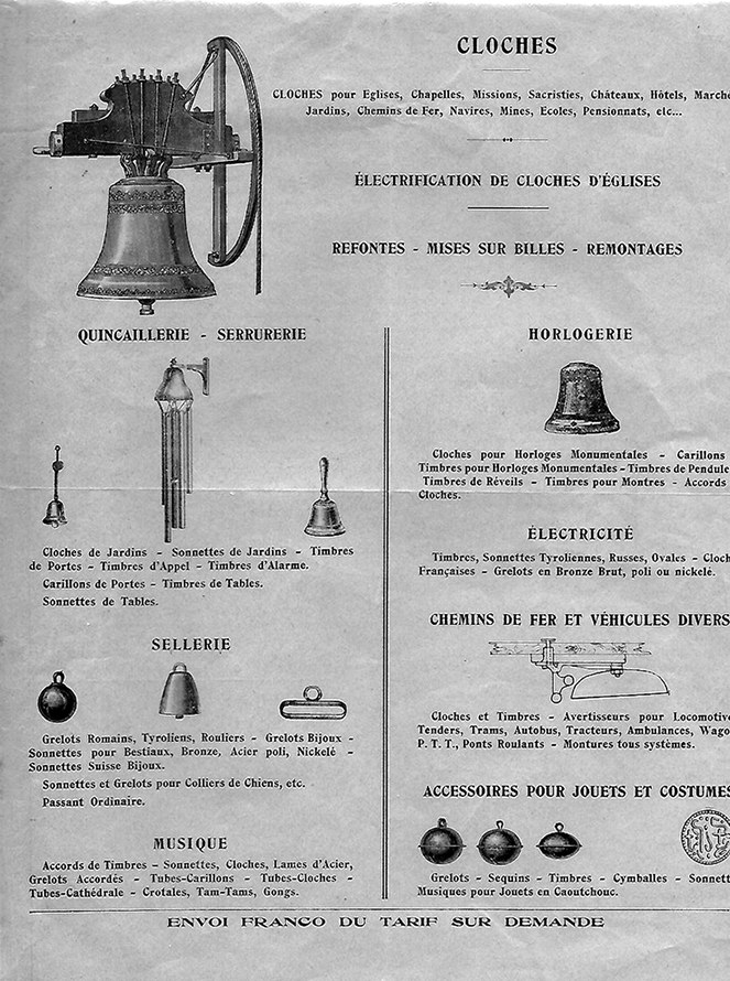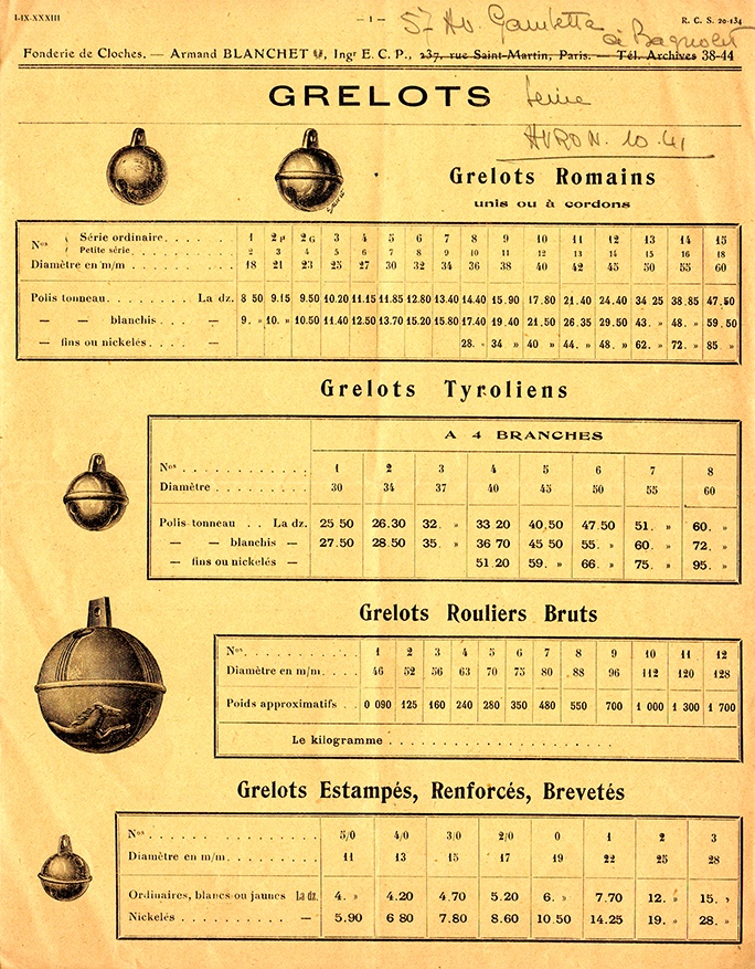 On connait des cloches de petite dimension destinées aux maisons, mais les clochettes et les grelots provenaient apparemment de la fonderie Granier dans l’Hérault.