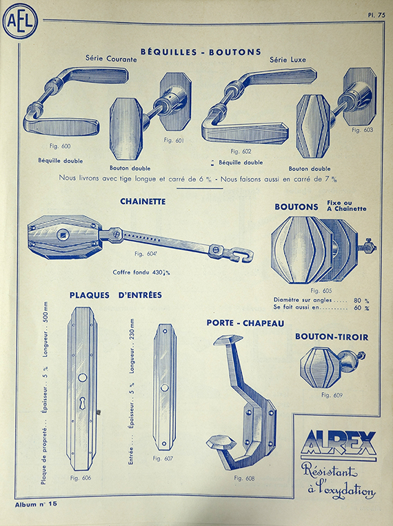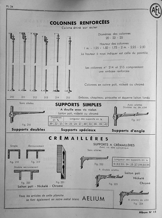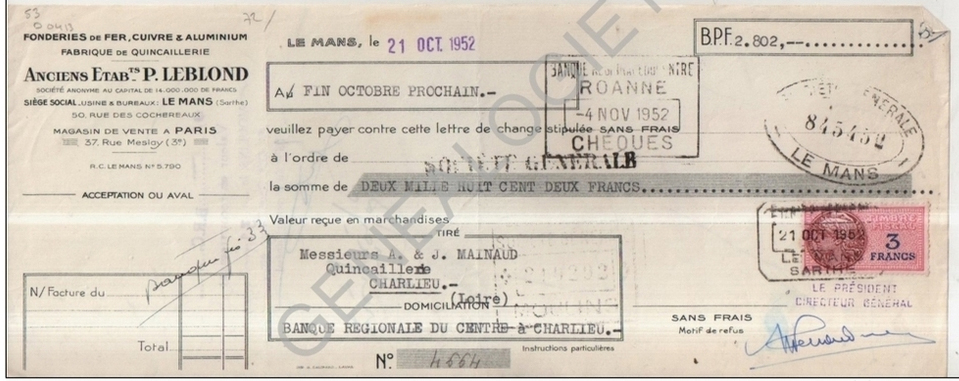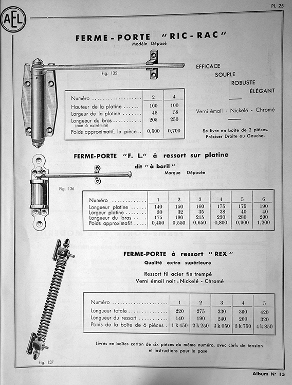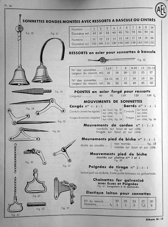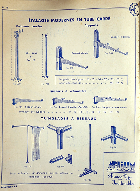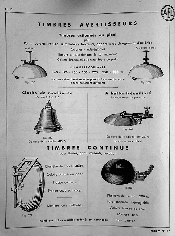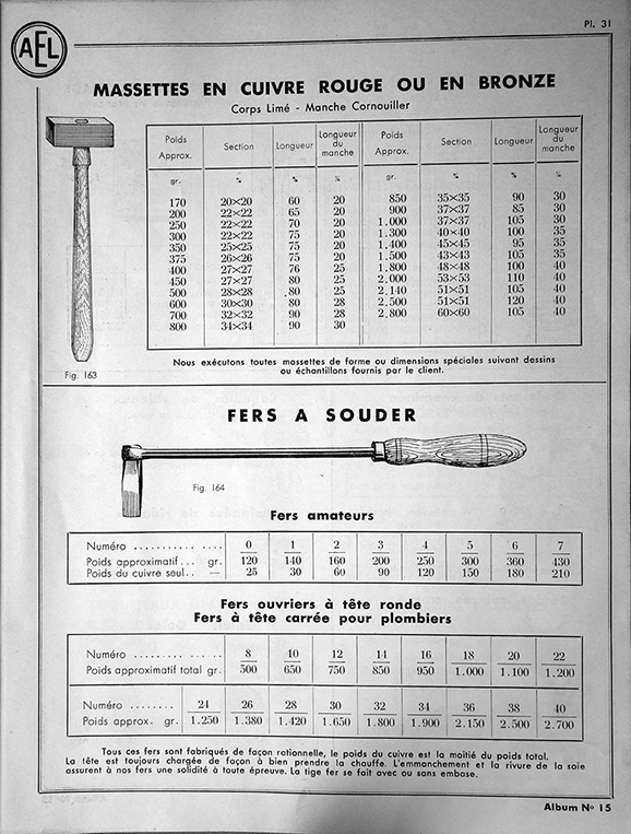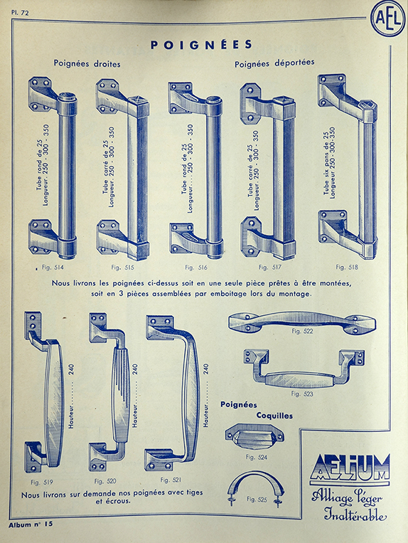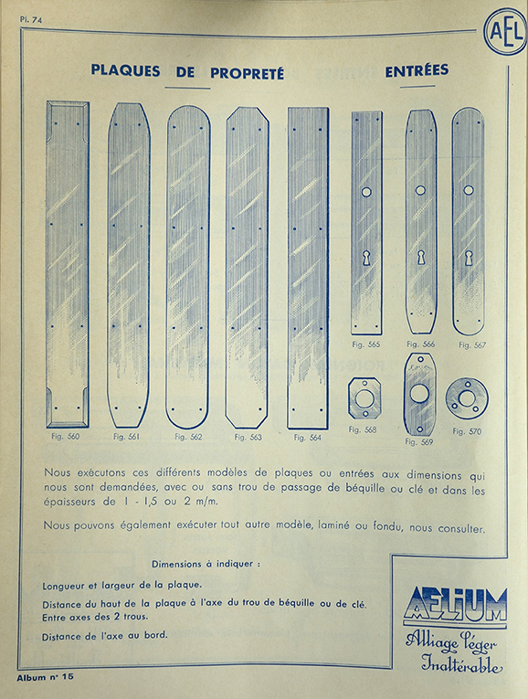 Datées 1924 à 1956, on trouve des factures et des catalogues intitulés « AEL, Anciens établissements Leblond », même adresse, 50 rue des Cochereaux, Le Mans, et même numéro de tél. : 1.30. L’entreprise dispose d’un magasin à Paris 3e , 37 rue Meslay. Il s’agit probablement d’un simple changement de nom d’entreprise.