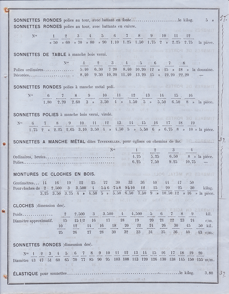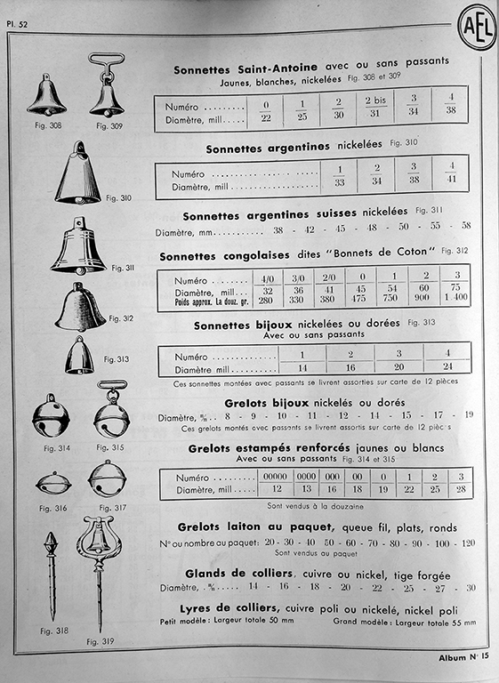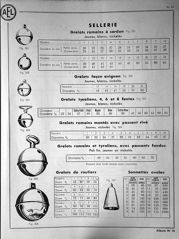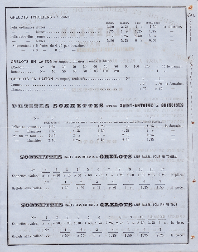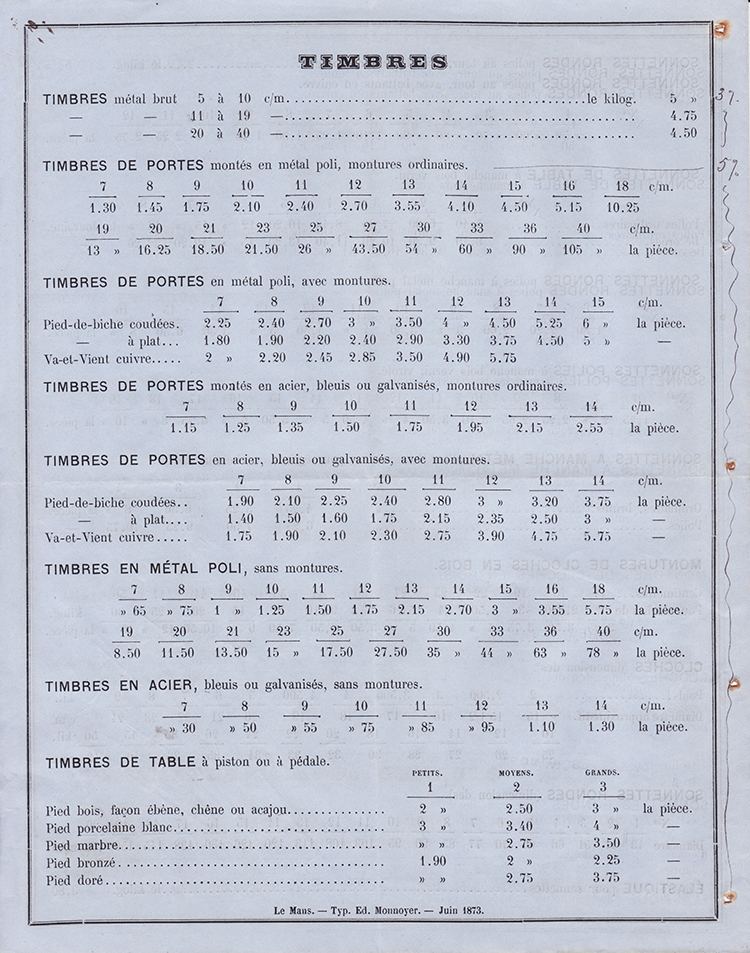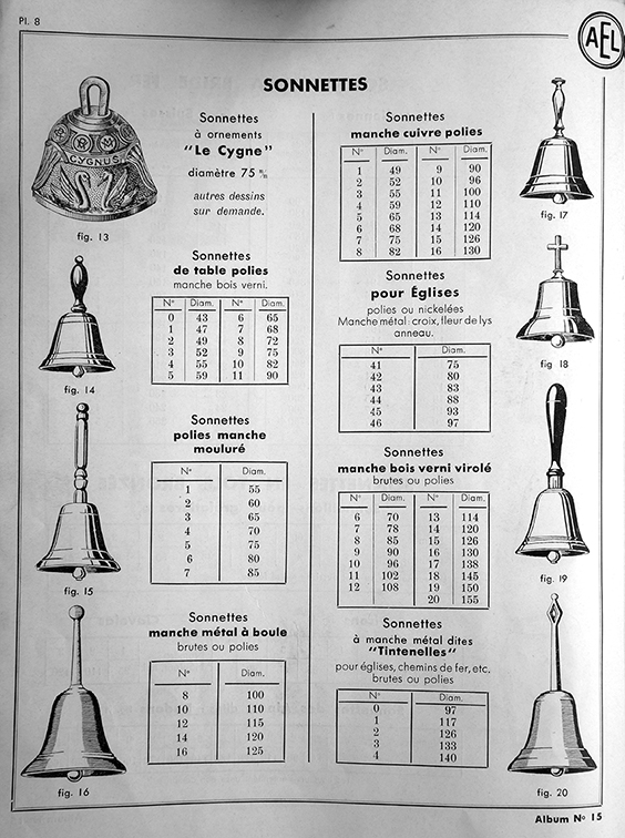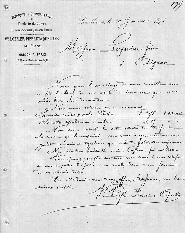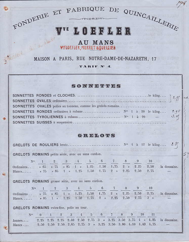 Les clochettes et les grelots du Mans (Sarthe) sont repérés par les collectionneurs grâce à quelques factures et des catalogues. Absentes de signatures, elles sont difficiles à identifier.