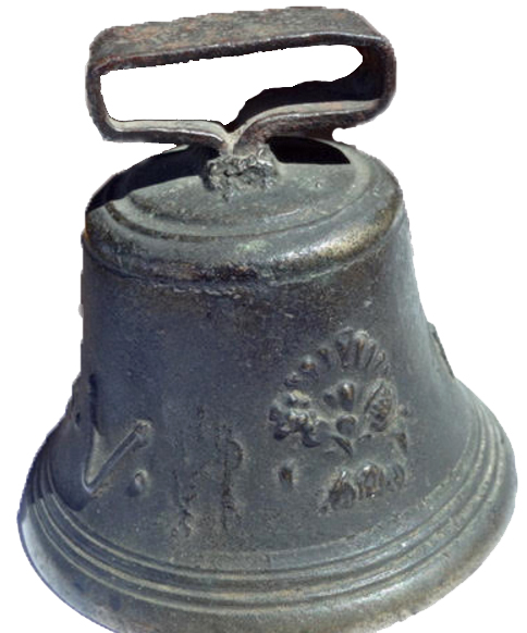 Récemment, il nous a communiqué la découverte d’une clochette, incontestablement destinée au bétail en raison de son anse large : dite à « boucle », « à passant » et même « à bride ». Datée de 1843 et signée F.V., elle est donc l’oeuvre de François Vallier (1809-1873), un des trois derniers fondeurs de la dynastie qui ont exercé au moins jusqu’en 1878 avec la cloche de Largentière-la-Bessée (Haute-Alpes).