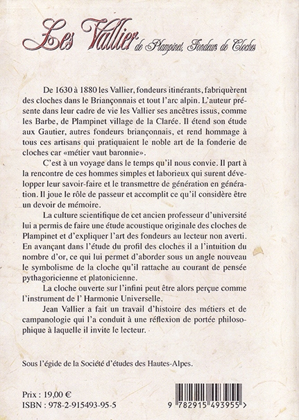Jean Vallier, descendant des fondeurs de cloches de Plampinet (Hautes-Alpes), a consacré deux livres à ses ancêtres.