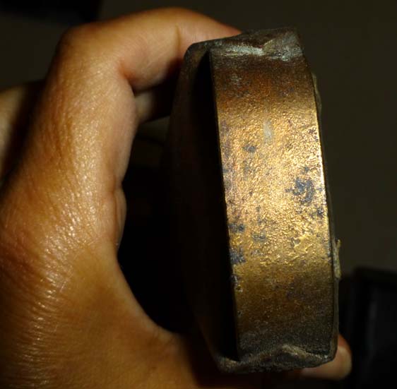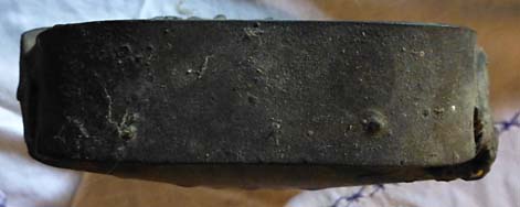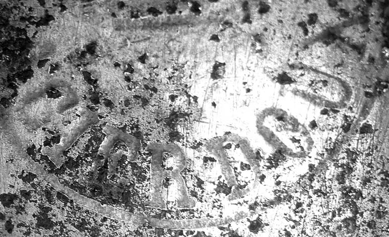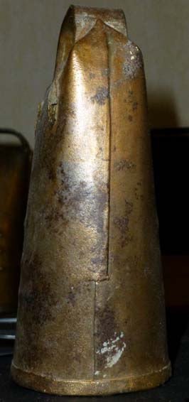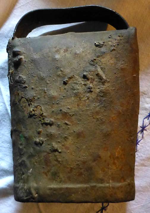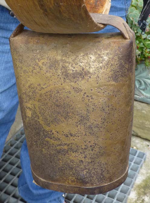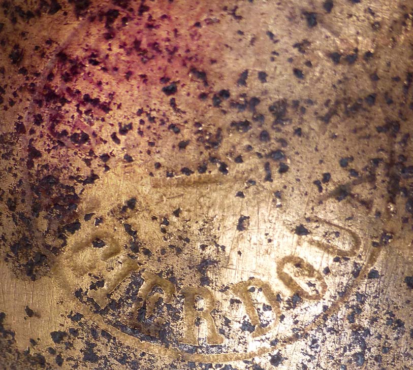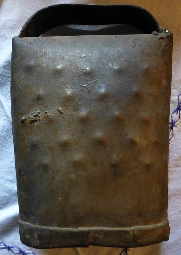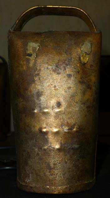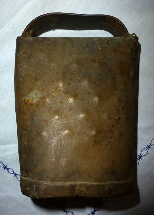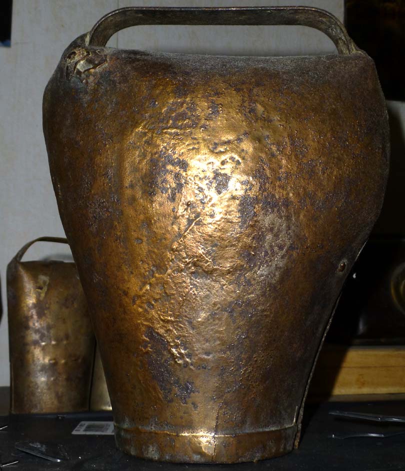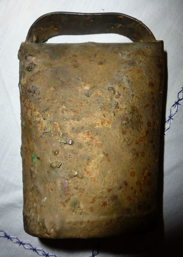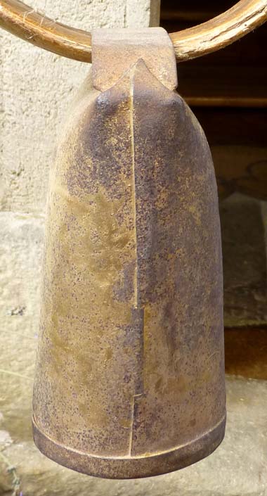Cairada avec marque : intriguante, cette marque est en réalité celle du fabricant de la tôle ACIERDOUX en bas et GU (?) en haut. Antoine a ménagé cette marque pour qu’elle s’intègre parfaitement avec la cloche.