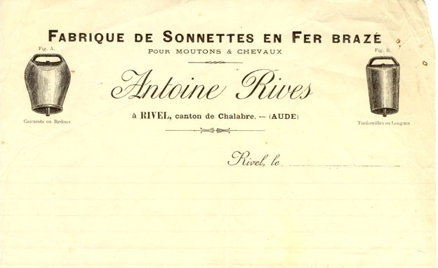 Jean Rives (1802-1887) dit « Jeannet » est sonnetier à Rivel. Son fils Charles Antoine (1855-1932) dit « Rivetou » ou « Ribet » dont les factures sont au nom d’Antoine Rives lui succède. Le fils d’Antoine, Jean-Antoine Rives (1888-1978), appelé Jean Rives, a exercé jusqu’à l’âge de 23 ans soit en 1911. En 1965, il conduit la visite qui a permis l’article du Midi-Libre.