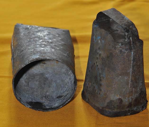 Borromba, borrombil : bombée, redon. Contrairement aux sonnaillers de l’Hérault qui emboutissaient les redons avec une forme, les esquelhers de Rivel ne disposaient pas de presse et façonnaient les borrombils à la main.