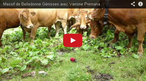 A l’Aup Bernard, un troupeau de génisses de race limousine portent des sonnailles italiennes Varrone Premana. Réputées pour la forme « casque » qui rencontre un grand succès dans toutes les régions, la sonnette « Chamonix » de cette fabrique est de seconde qualité et moins chère que la Devouassoud.