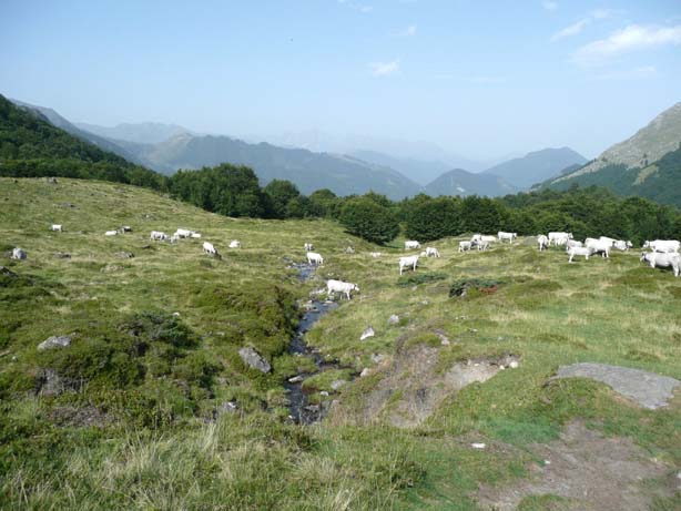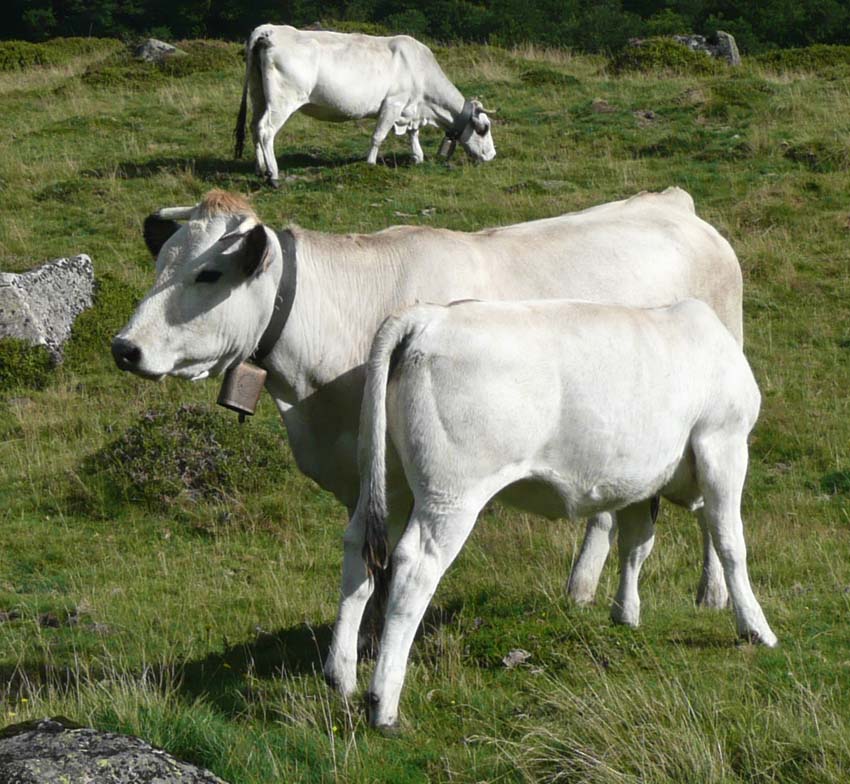 La vache Gasconne, à robe grise avec les extrémités noires (bord des oreilles, pointe des cornes, queue, museau, sabots) et des yeux toujours impeccablement maquillés de noir, compose la majorité des troupeaux d’estive. Elle allaite un veau destiné à la boucherie, le « boeuf gascon », qui bénéficie du Label rouge. Assez peu visible dans les alpages, la Limousine est néanmoins majoritaire sur le département.