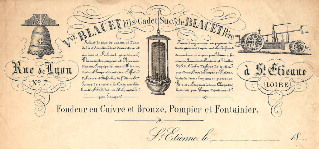 En 1831, l’ « Indicateur du commerce, des arts et des manufactures de Saint-Etienne » indique Blacet (Mathieu ?) parmi les fondeurs en fonte et en cuivre place Notre-Dame et N. Blacet, rue de Lyon.