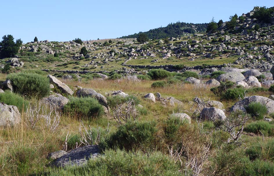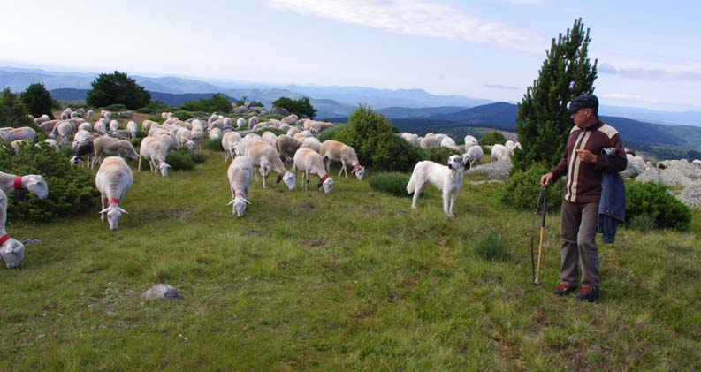 Aujourd’hui sur le Mont Lozère, il y a surtout des vaches dans des pâturages fermés. Ici, on a la chance d’avoir un vieux qui veut des moutons jusqu’à sa mort et qui refuse de louer ses terrains pour les vaches, pourtant ça rapporte plus, à l’époque la vache et son veau se payaient 1500 francs par estive (200 euros).>>