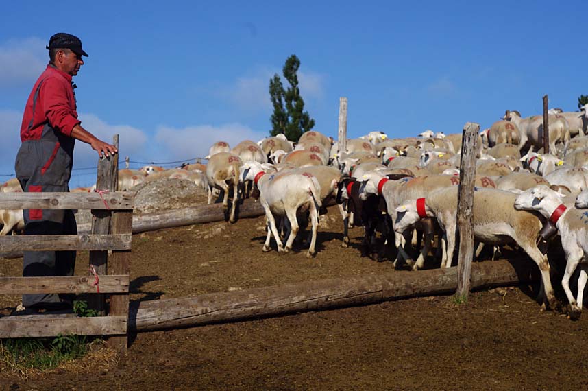 <<Pour reconnaître les bêtes, je ne me fie pas aux cloches. Qu’elles aient une cloche ou qu’elles n’en aient pas, je fais ça à la vue. Ici, c’est assez découvert. S’il en reste une, c’est qu’elle a un problème et on peut le remarquer bien avant qu’elle sorte du troupeau. Dans le parc, je remarque celles qui ont un problème. Dans le parc, elles se groupent par troupeau d’origine, mais la journée, elle se mélangent.