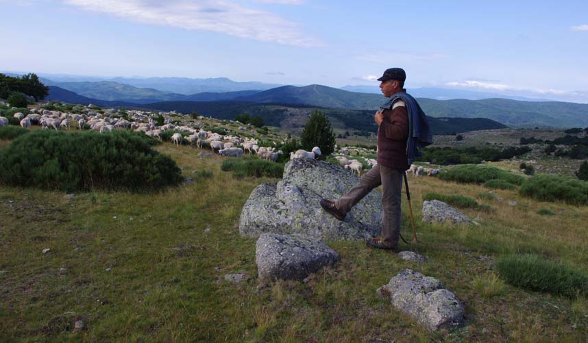 Bruno Serieys effectue la plus longue transhumance parmi les bergers languedociens, perpétuant la tradition des éleveurs de la garrigue montpelliéraine qui pouvaient voyager jusqu’en Margeride et Aubrac. De Murviel-lès-Montpellier à La Vialasse au pied du Mont Lozère, son voyage à pied dure sept jours.