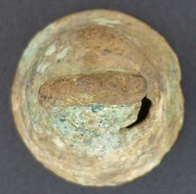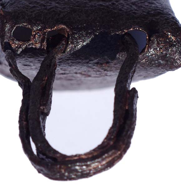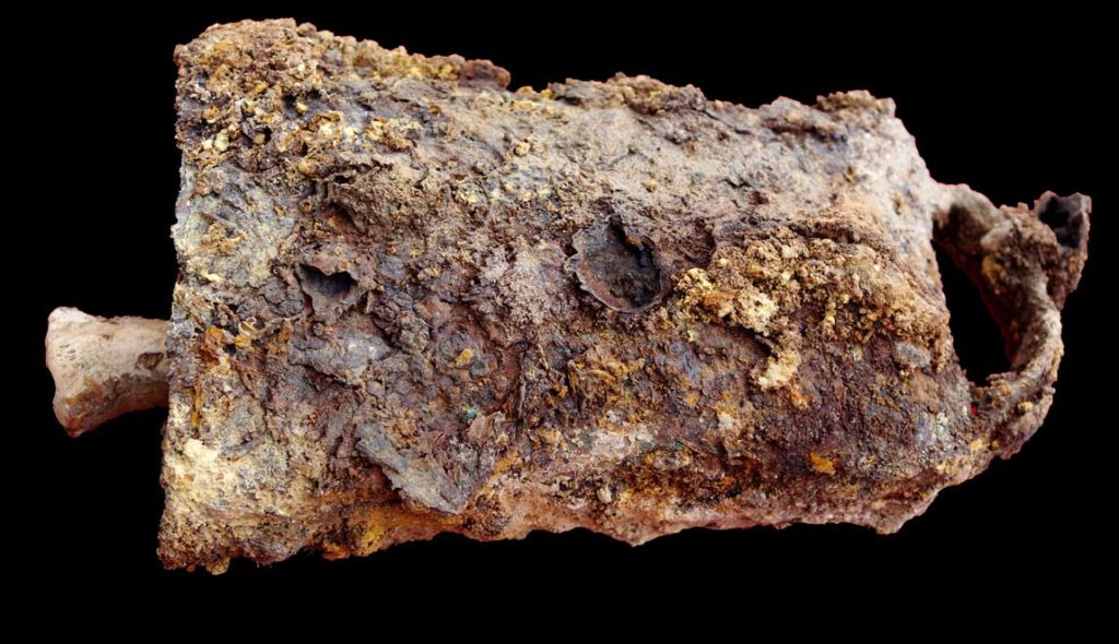 L’état de la sonnaille trouvée à l’extérieur de l’enceinte dans la zone de stabulation en 2005 est surprenant, même dans un contexte aussi favorable aux métaux ferreux. Le traitement de conservation/restauration qu’il a reçu permet une étude plus approfondie.