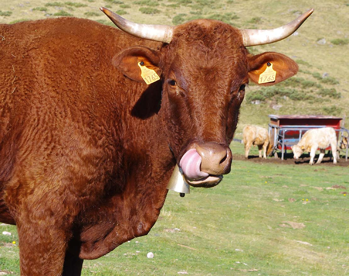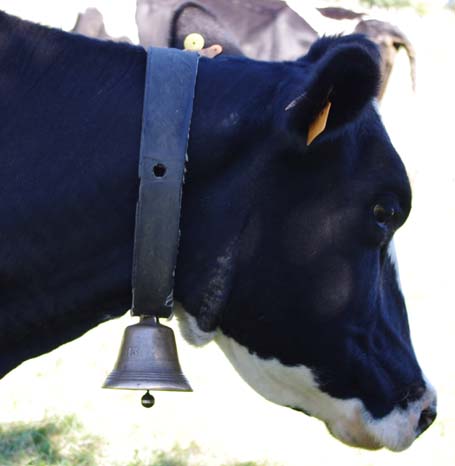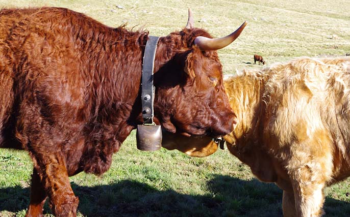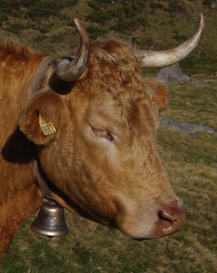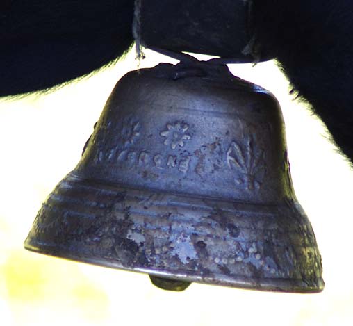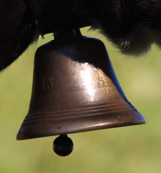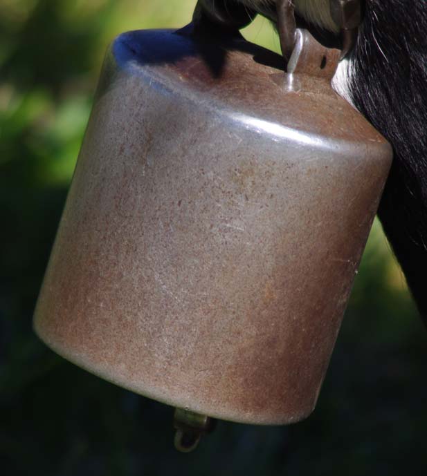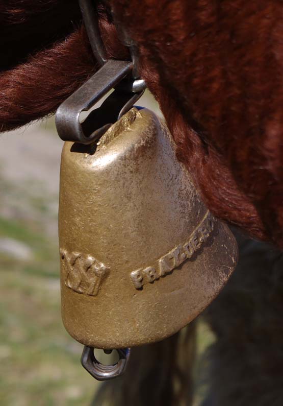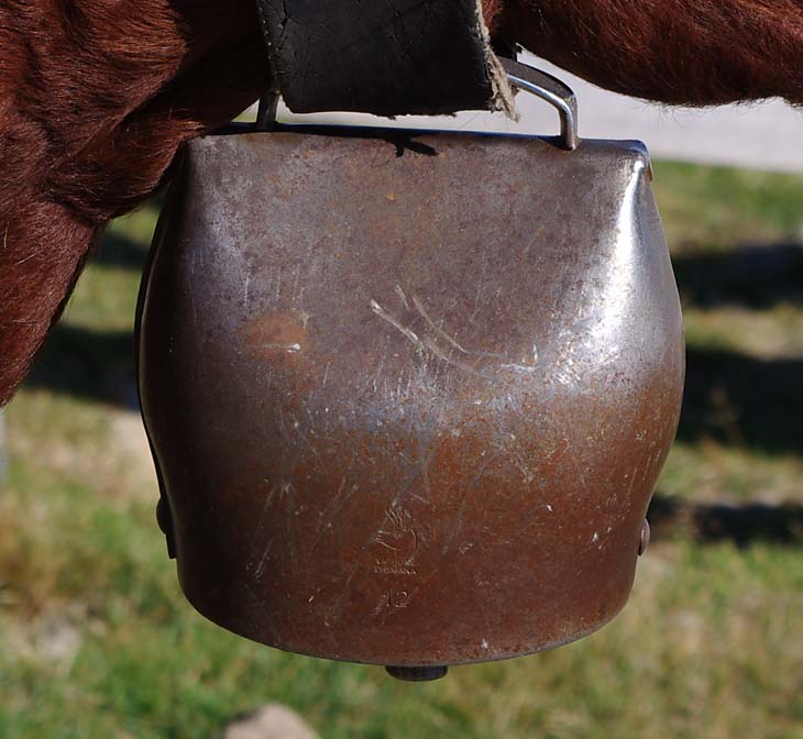 Celles qui sont sur les vaches datent de mes parents. Nous on mettait des cloches, moi, j’ai toujours entendu dire ça, la tradition, c’est parce que dans les montagnes quand on les perdait dans le brouillard on entendait les cloches. Les veaux reconnaissent la cloche de leur mère. On ne change pas de cloche pour sevrer comme on fait avec les brebis, peut-être que c’est plus docile les brebis, nous avec la vache c’est pas toujours.