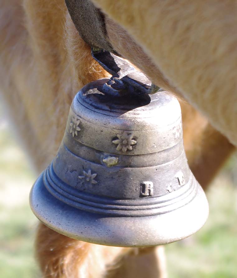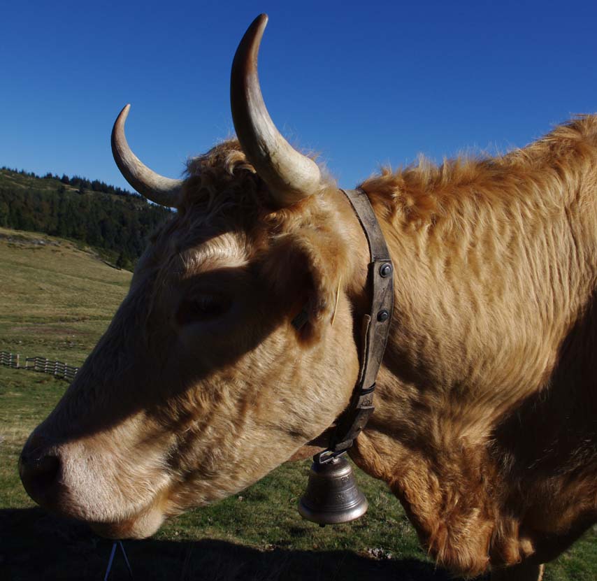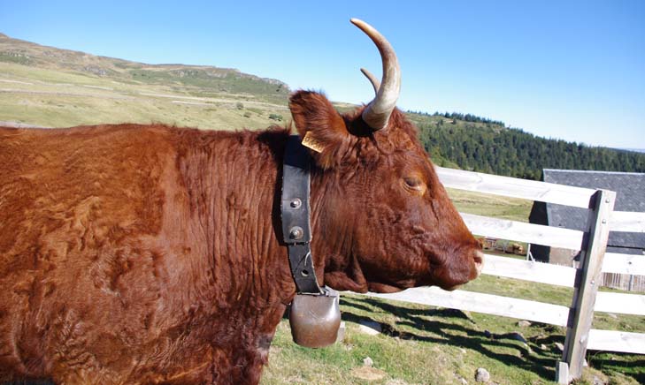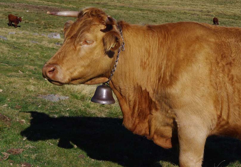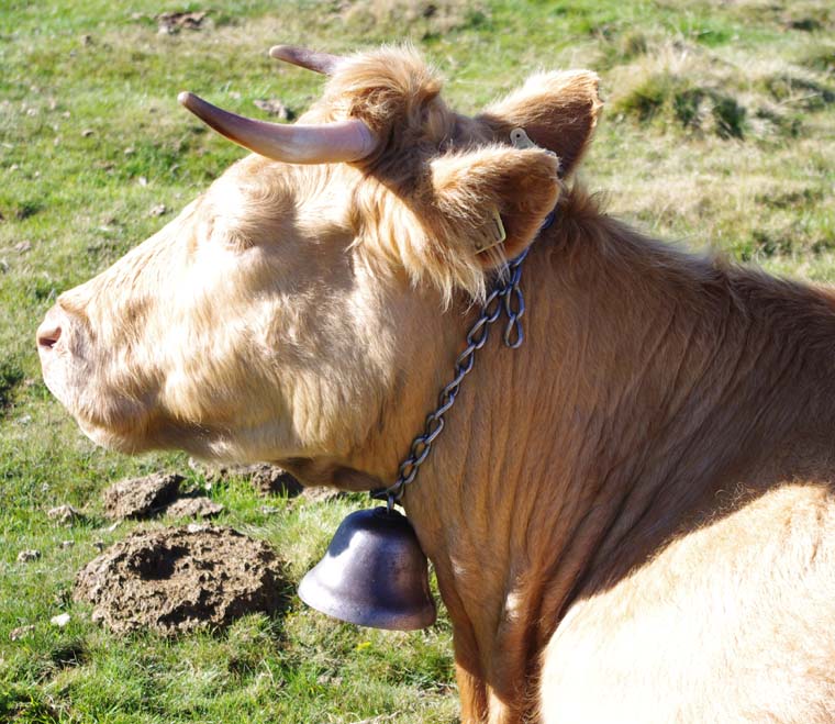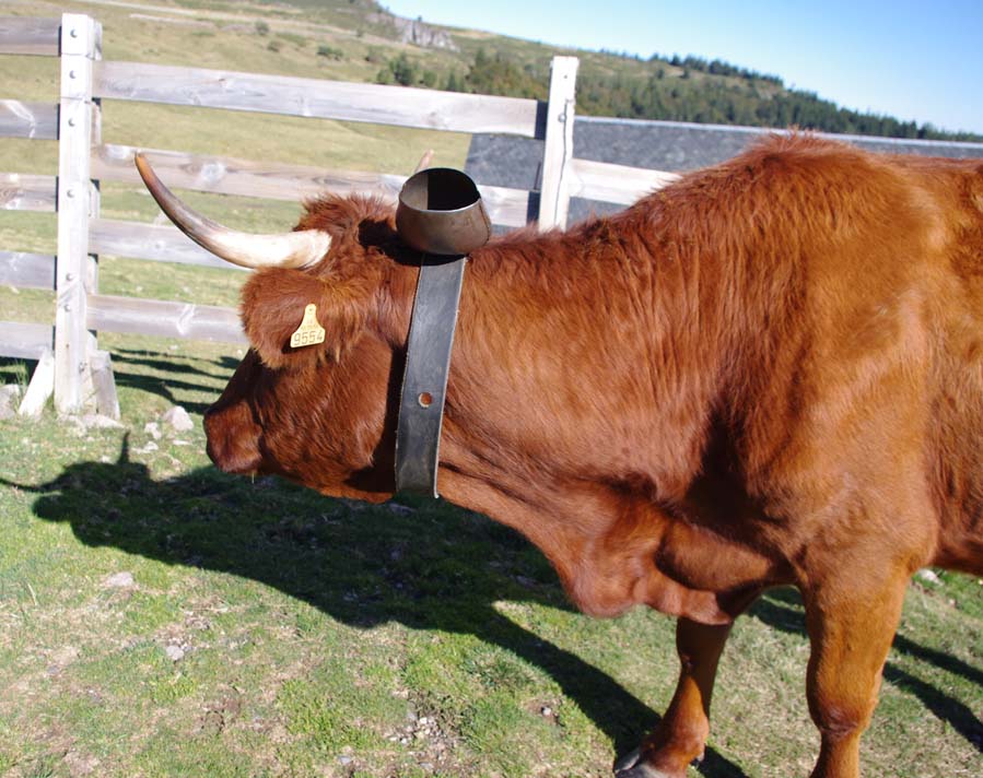 On en avait une grosse suisse qu’on mettait à la plus belle vache, tout l’été, mais à l’étable on les enlève. Maintenant on met des cloches pour le plaisir parce qu’avec les clôtures électriques il n’y a plus besoin de les garder. Je me souviens, mes frères allaient garder les vaches par là-haut. Et ils descendaient de là-haut le midi pour aller manger au buron.