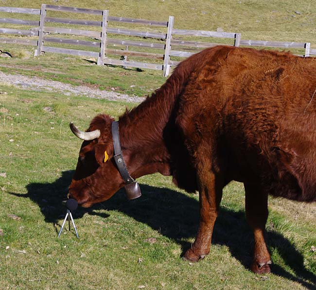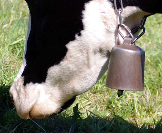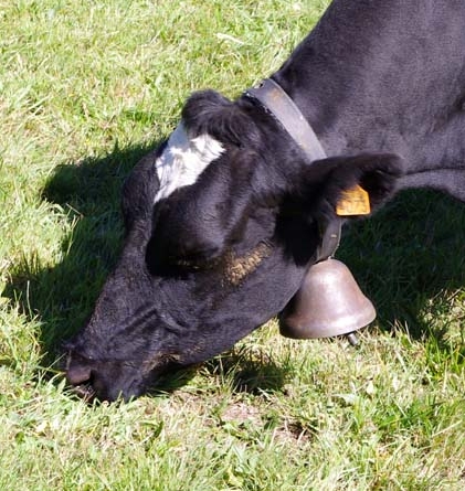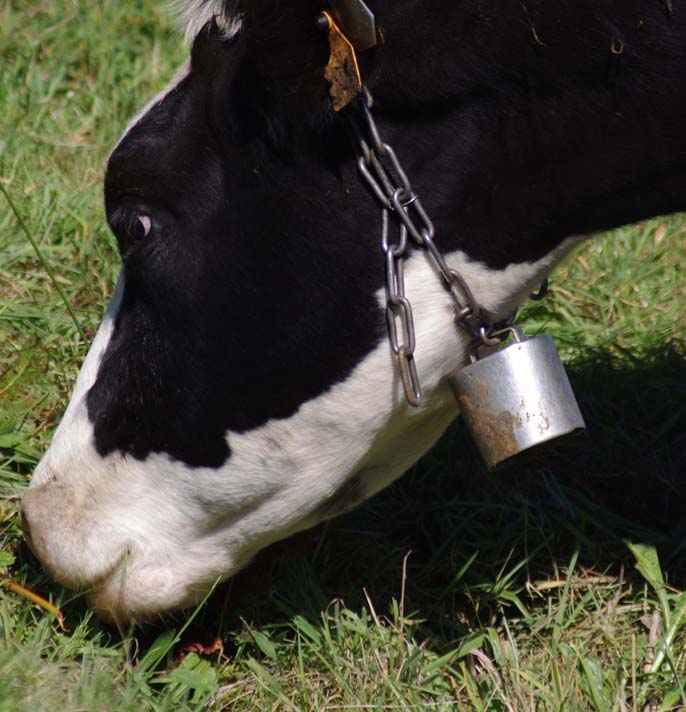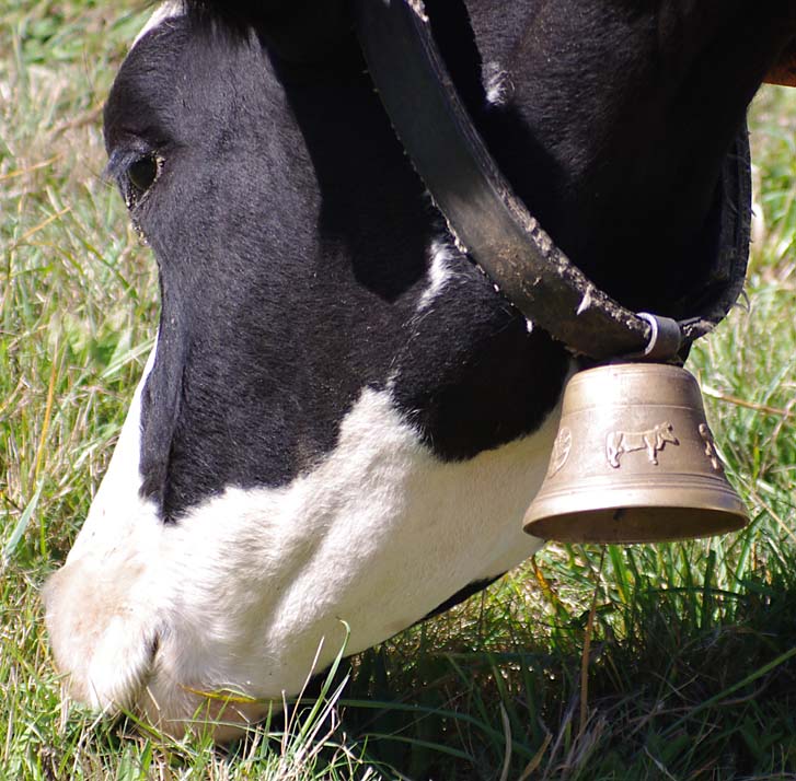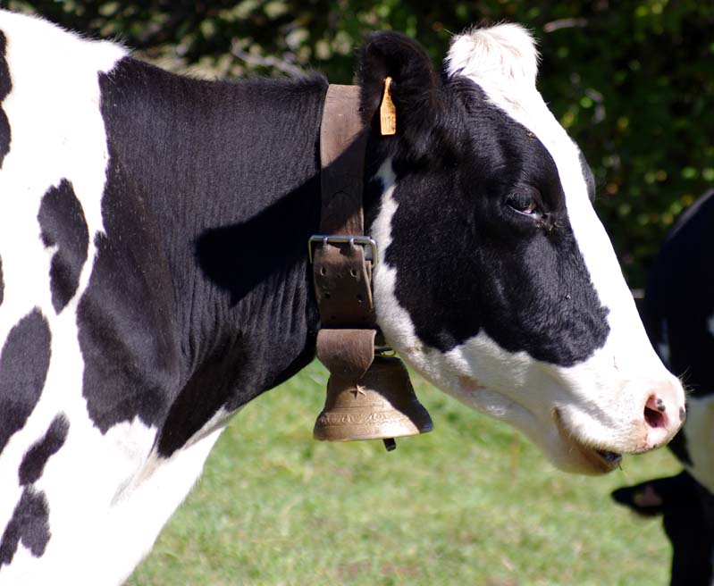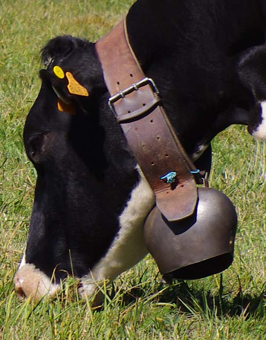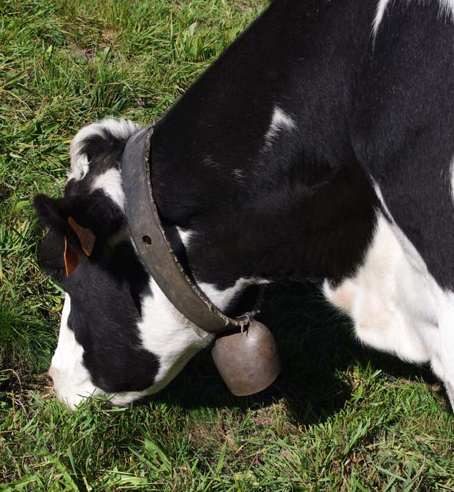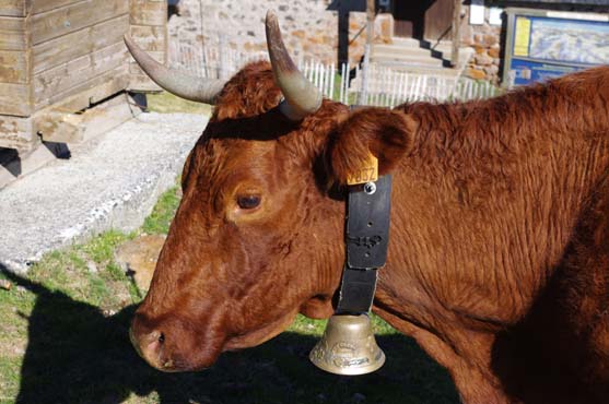 On en avait une grosse suisse qu’on mettait à la plus belle vache, tout l’été, mais à l’étable on les enlève. Maintenant on met des cloches pour le plaisir parce qu’avec les clôtures électriques il n’y a plus besoin de les garder. Je me souviens, mes frères allaient garder les vaches par là-haut. Et ils descendaient de là-haut le midi pour aller manger au buron.