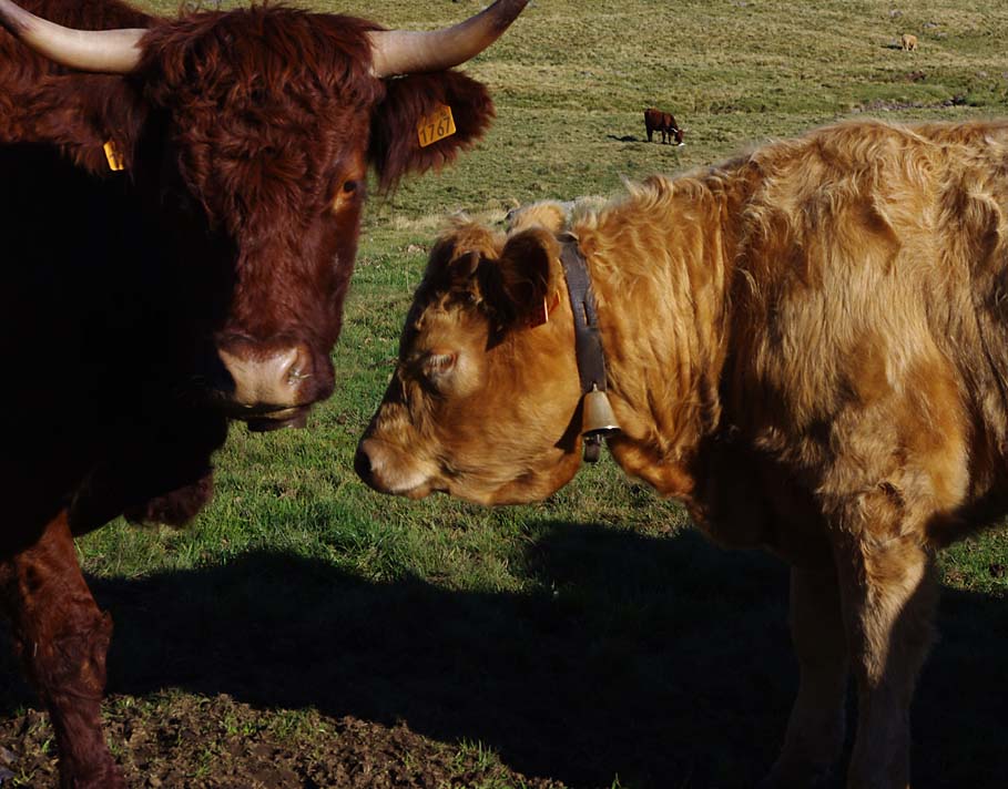 Stéphane met des sonnailles par passion puisque ses vaches, des Holsteins pour faire un excellent Salers non traditionnel sont parquées. Le fromage Salers tradition doit être réalisé avec des vaches salers. Le Salers peut être réalisé avec d’autres vaches, mais uniquement en période d’estive. La dénomination Cantal accepte le lait de toutes les périodes avec toutes les vaches.