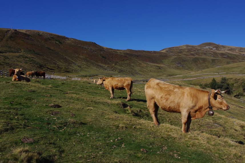 Le col de Prat-de-Bouc, au départ des balades qui mènent au sommet du Plomb-du-Cantal, un ancien volcan dont le cratère mesurait 80 km de diamètre, constitue une magnifique zone d’estive avec des éleveurs passionnés de cloches.
