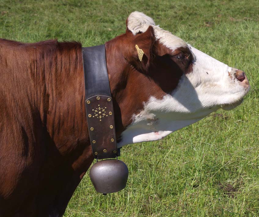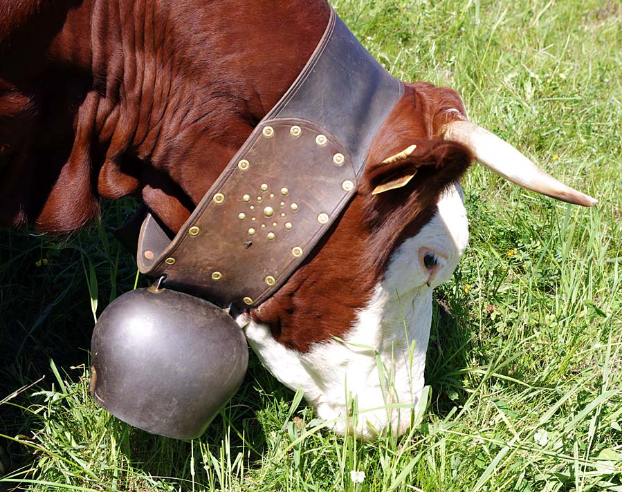 La meilleure des cloches de l’Italien Varrone Premana est la forme appelée « casque » par les éleveurs, Alpine par les fabricants. Les gros modèles, d’excellente sonorité, nécessitent un large collier.