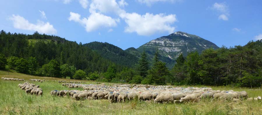 Les bergers provençaux transhument dans les Alpes (Mercantour, Ubaye, Haut-Verdon, Vercors, Belledonne, Briançonnais, Queyras, Oisans et Vanoise). Aujourd’hui, elle s’effectue principalement en camion avec une marche d’une journée pour rejoindre la cabane.